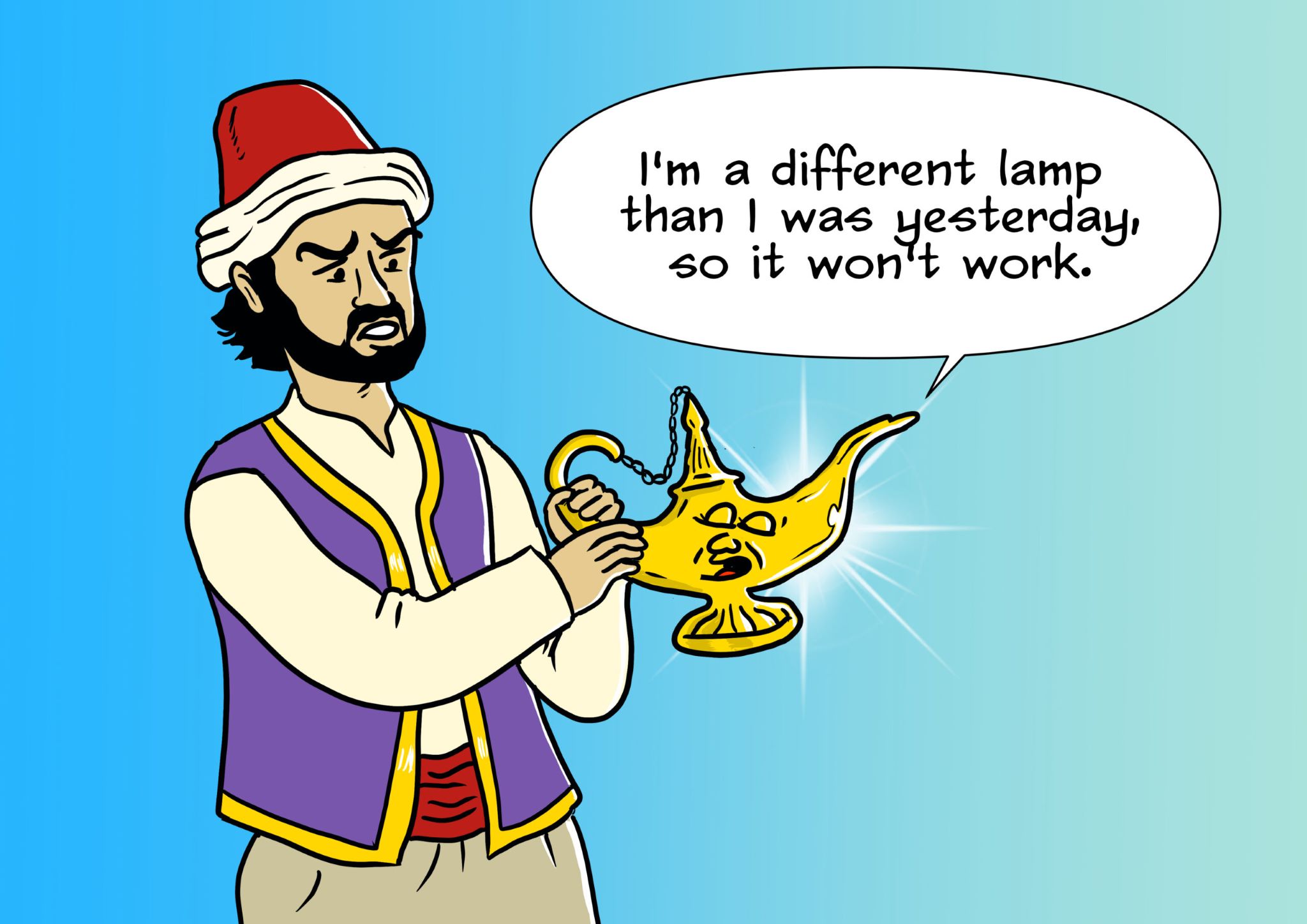 “Suppose a man, O king, were to light a lamp, is it the same flame that burns in the first watch of the night, and in the second, and the third?”