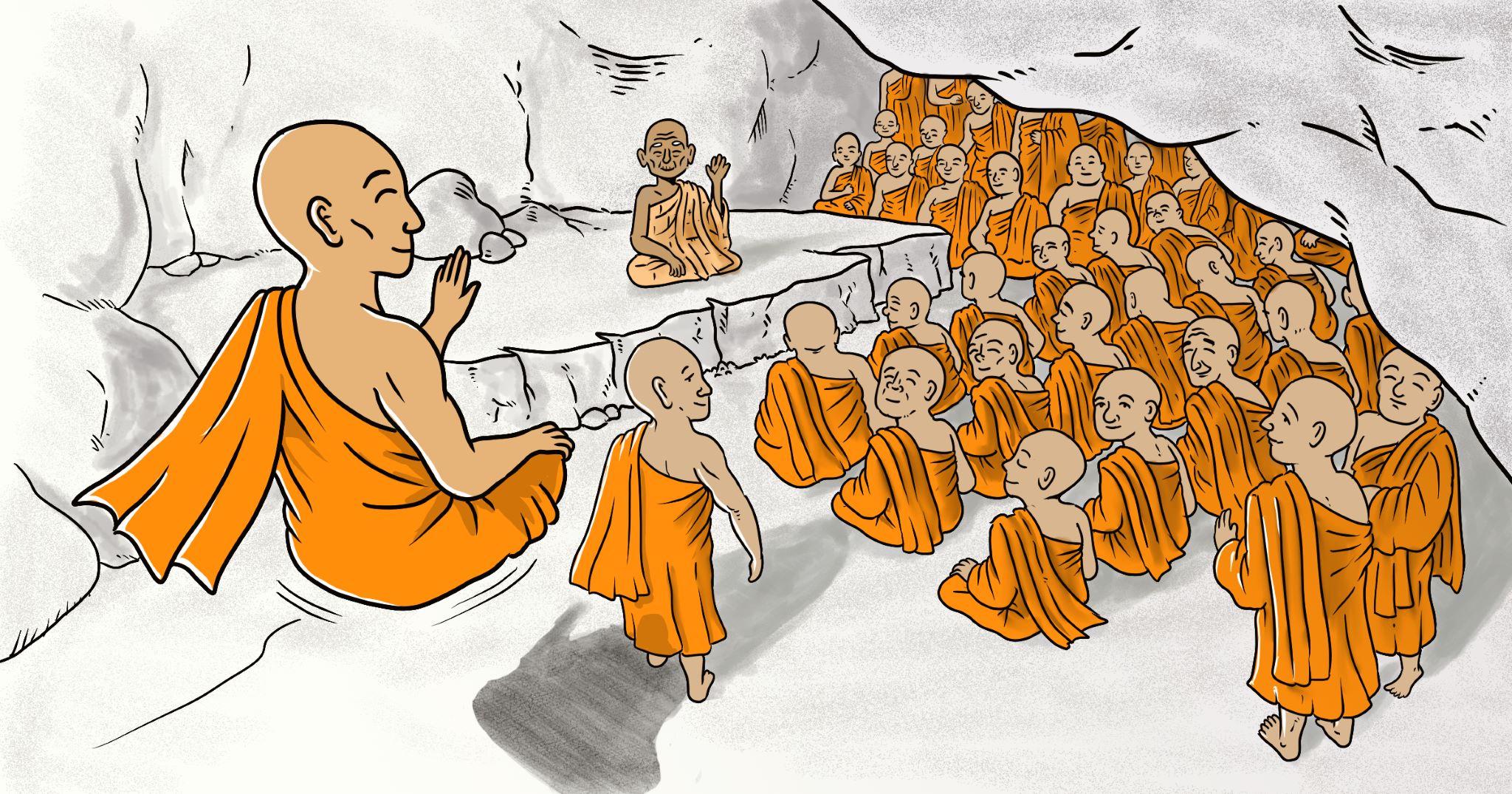 Mahā Kassapa’s plan was to convene a gathering of arahants to consolidate, solidify and preserve what the Buddha taught. Remember the Buddha called his main training system dhamma-vinaya, where dhamma (or dharma) refers to the teachings and vinaya refers to the discipline. The gathering would preserve both parts. This gathering would be known in history as the First Buddhist Council. It would be attended by roughly five hundred arahants, and presided over by Mahā Kassapa. It would be held at the Sattapani cave at Rajgriha, under the patronage of King Ajātasattu.