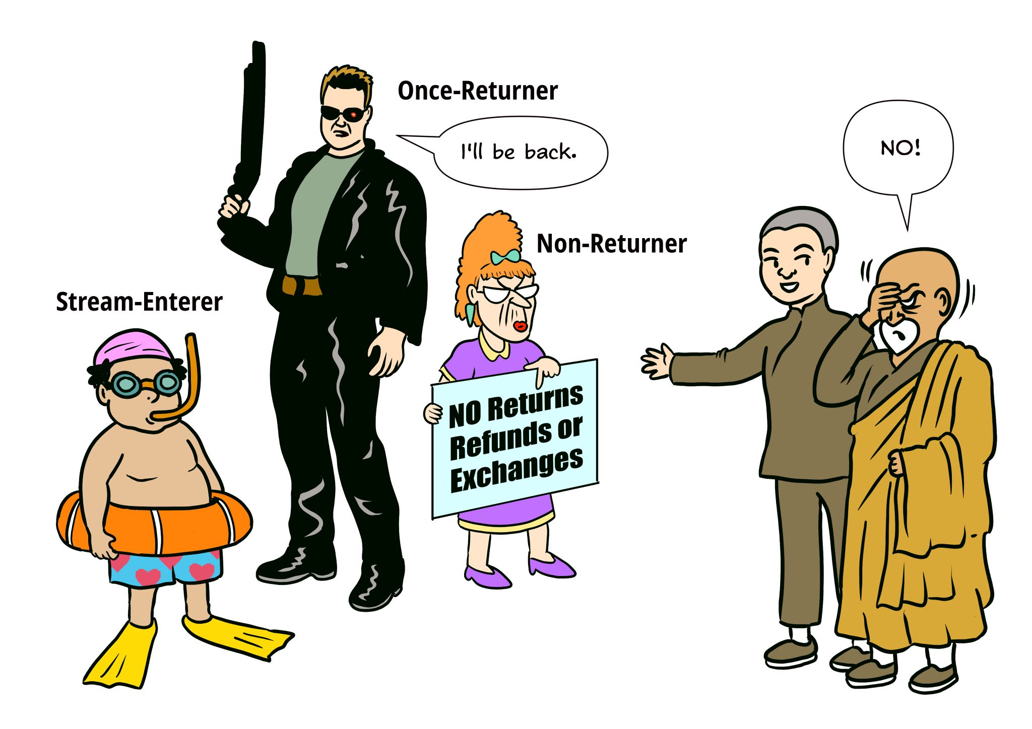 | Non-returner | Abandoned (4) sensual desire, and (5) ill-will. |