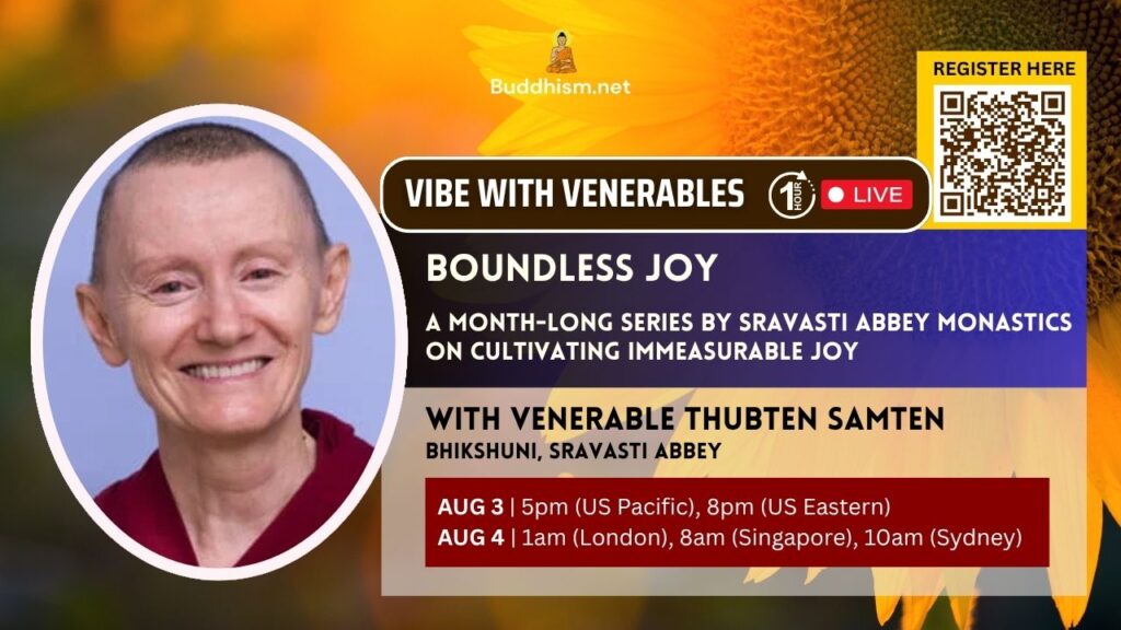 Each Venerable speaker will share their insights on how to deepen this immeasurable quality of Joy, making it an integral part of our lives.